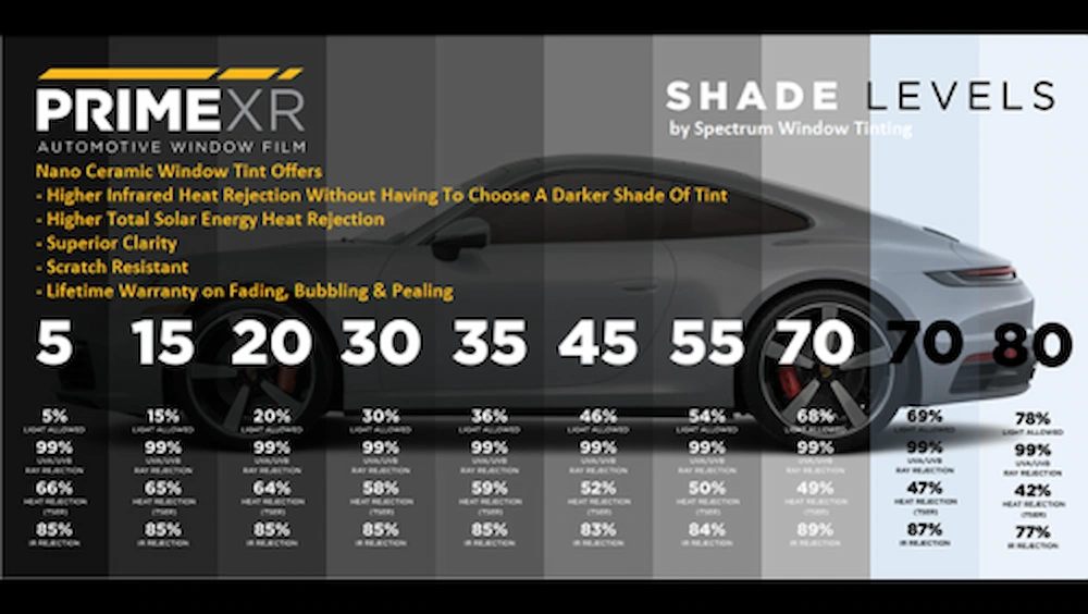 도로교통법상 앞면 유리는 가시광선 투과율 70% 이상, 운전석 옆면(1열)은 40% 이상을 준수해야 합니다.